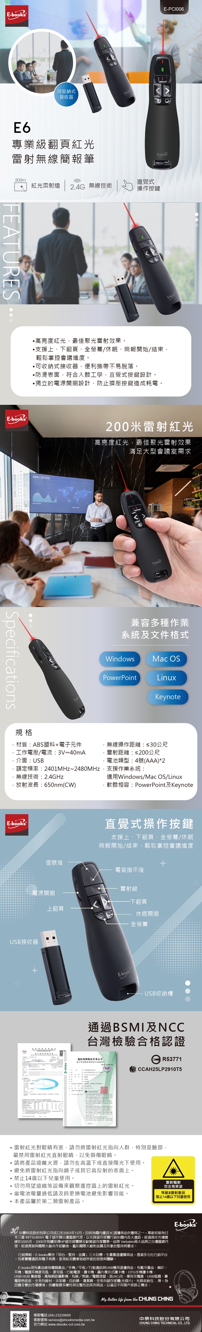 E6 專業級翻頁紅光雷射無線簡報筆