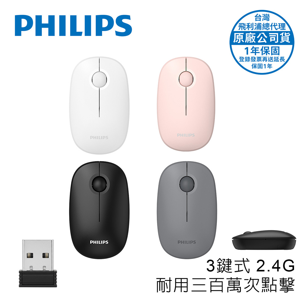 PHILIPS SPK7378 3鍵式2.4G無線1600DPI滑鼠-粉