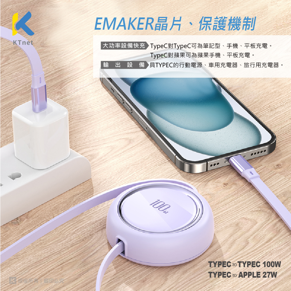 KTYUG312-CL1MW G312 TYPEC-蘋果 單雙隨意拉伸縮快充傳輸線27W-1M 白色