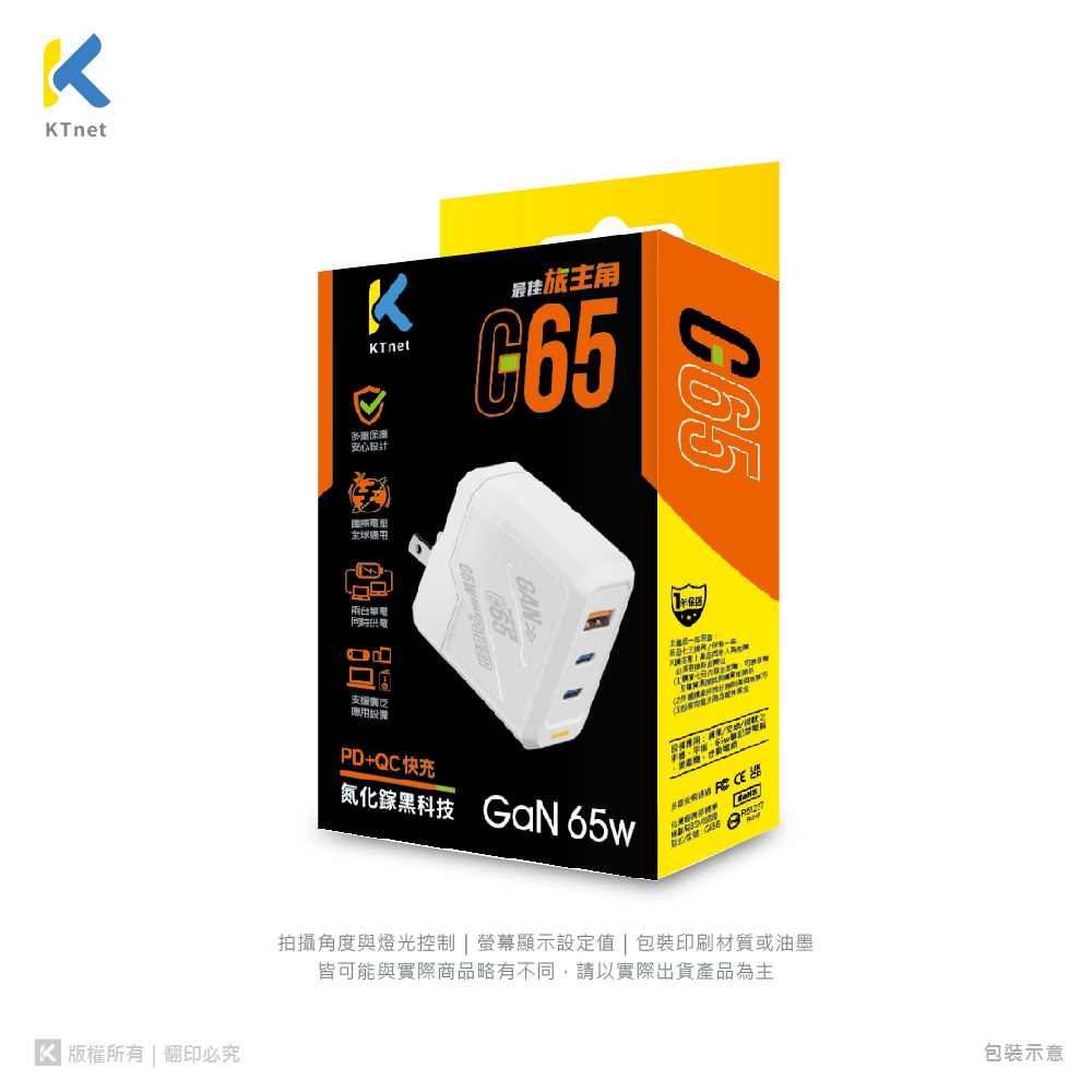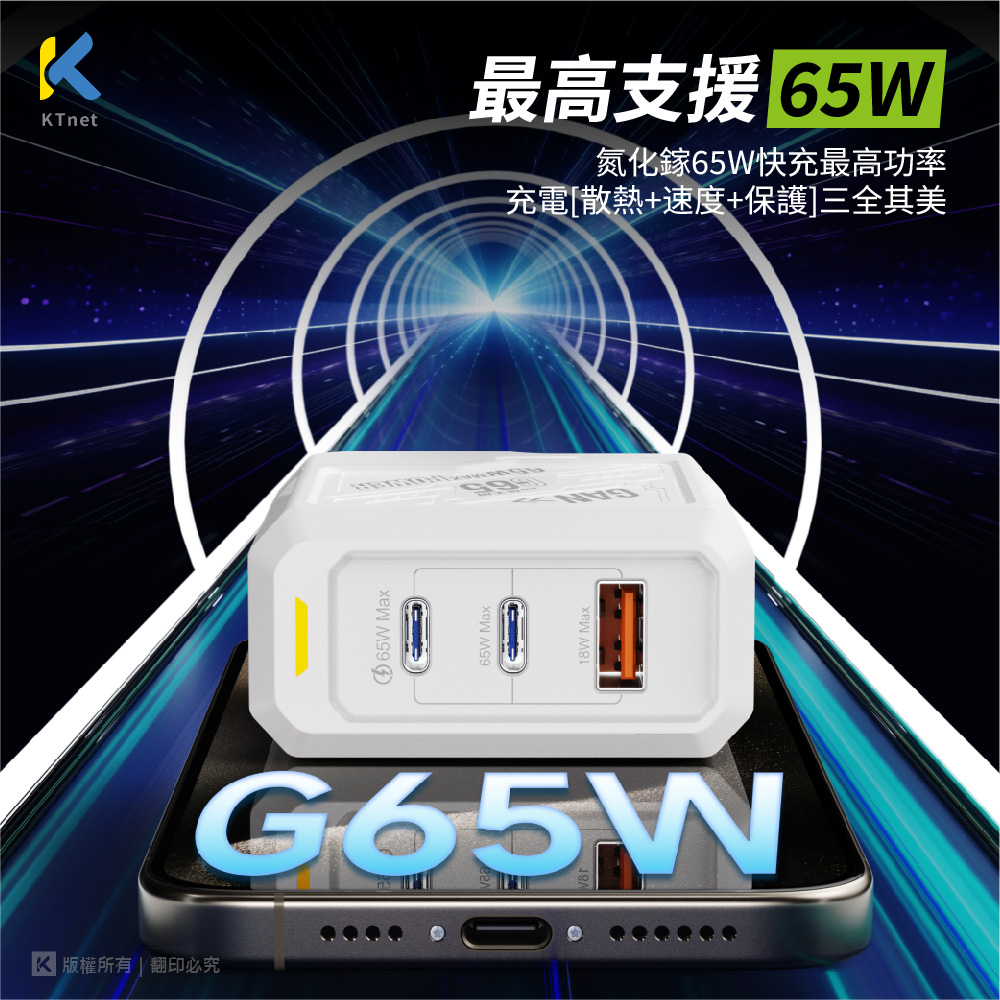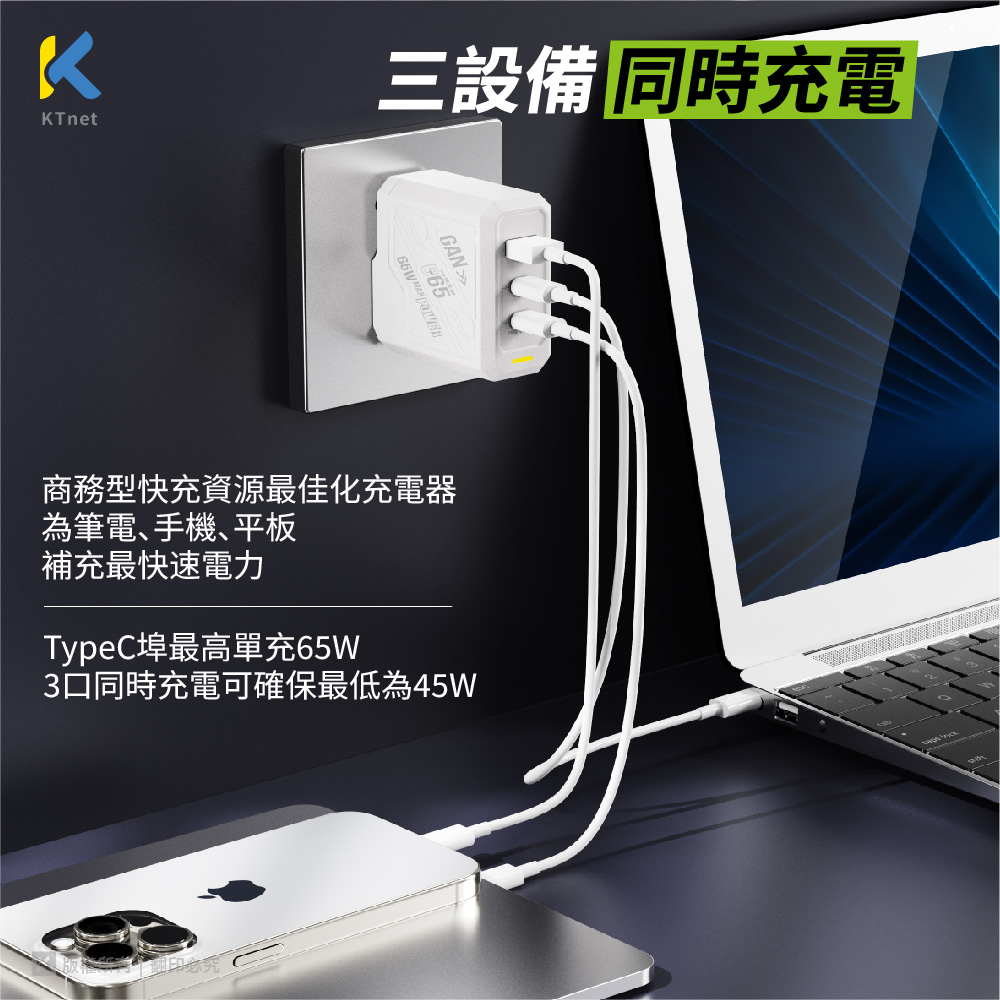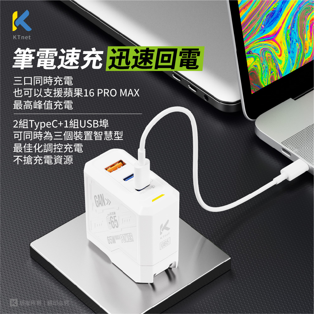 ■氮化鎵65W快充最高功率 - 充電散熱 / 速度 / 保護三全其美■3口同時充電也可支援蘋果16 Pro Max最高峰值充電■90度可折疊插腳,輕量化設計,收納、攜帶便利
