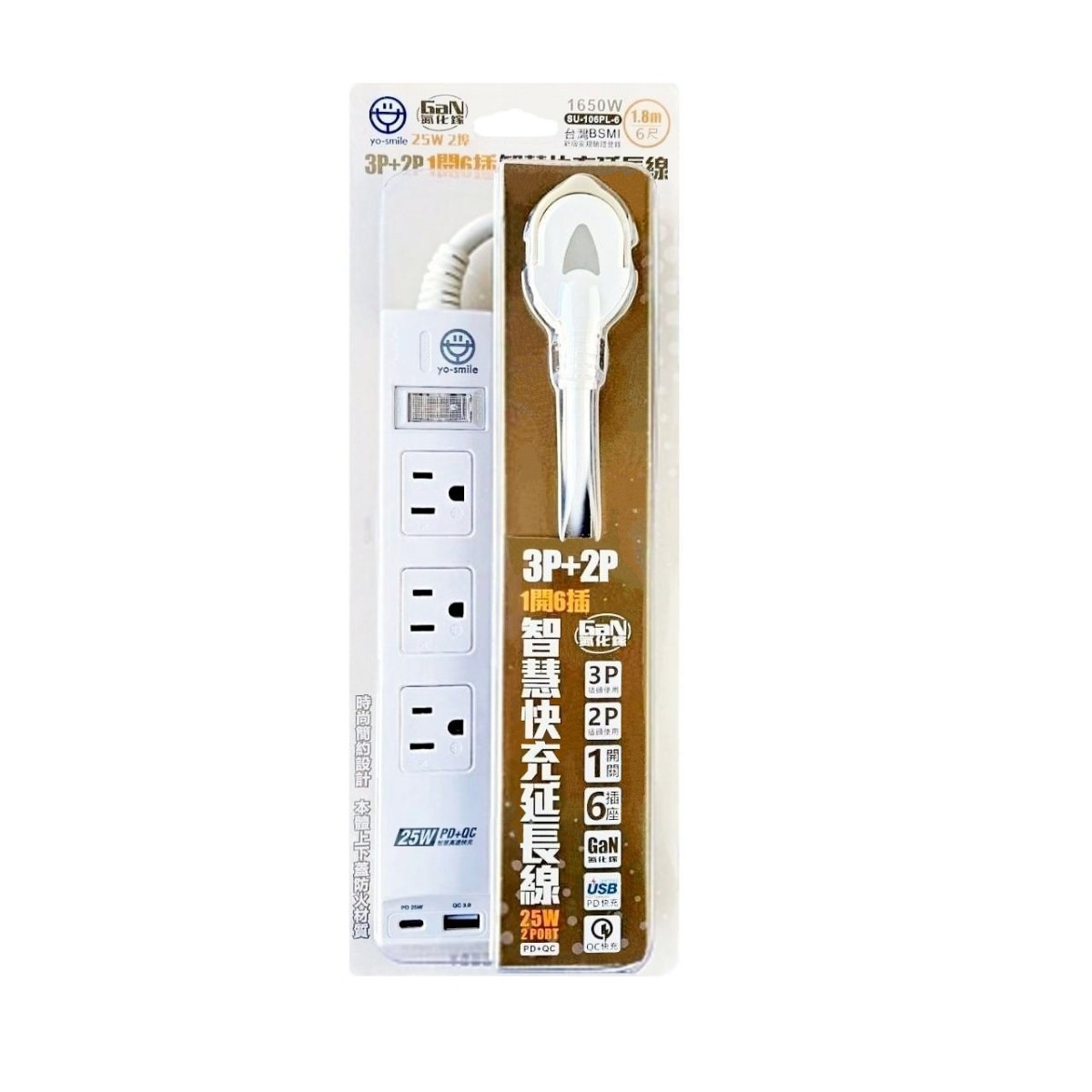 ◆商品名稱:LEASSU-106PL-6 【yo-smile】3P+2P 1開6插快充延長線 1.8米