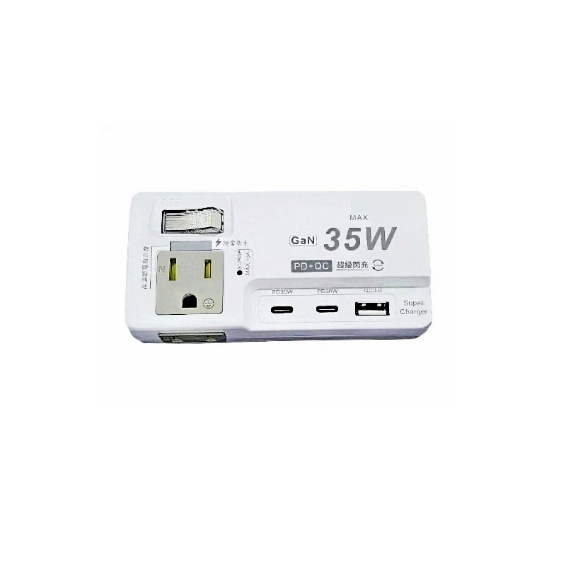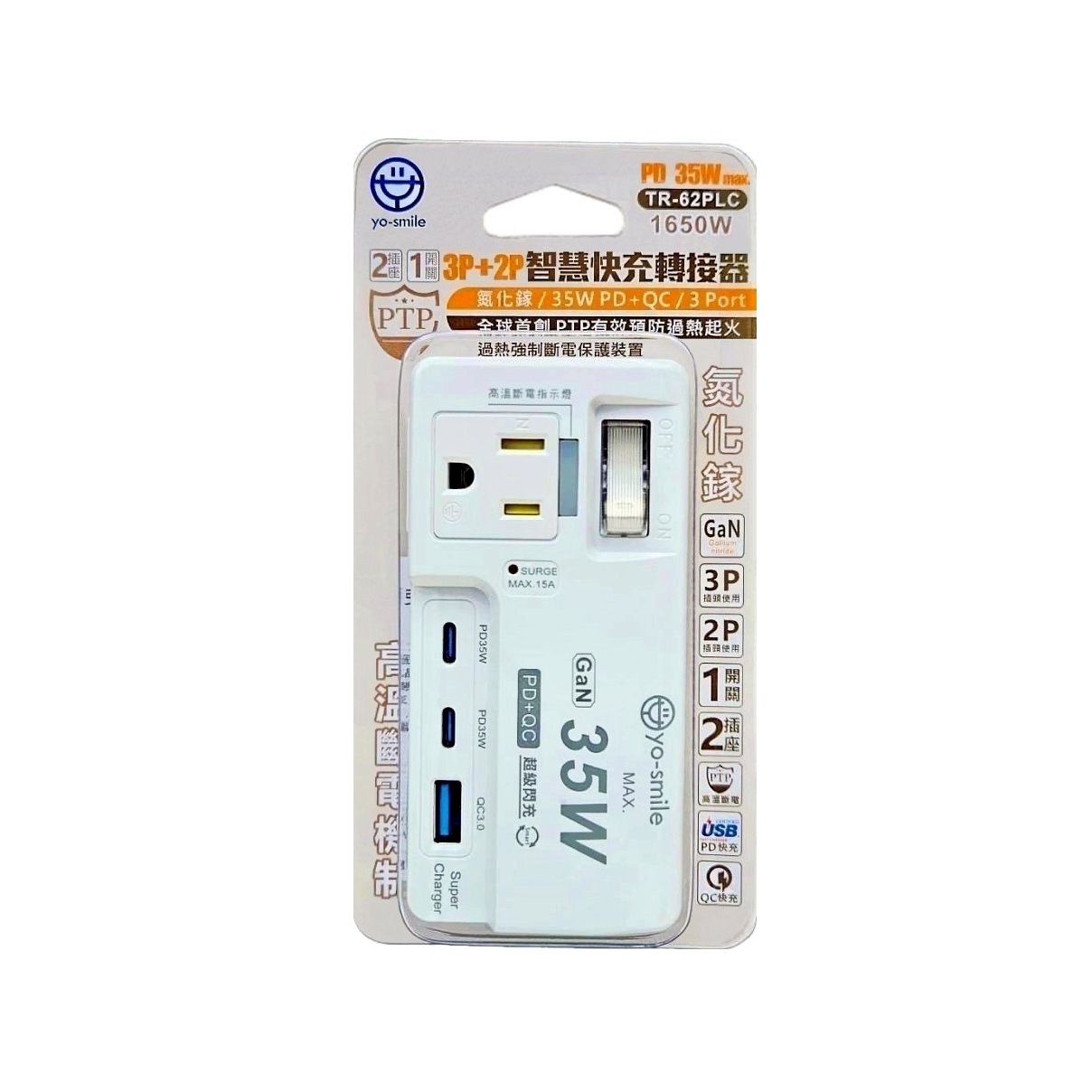 ◆商品名稱:LEASTR-62PLC 【yo-smile】3P+2P 1開2插氮化鎵快充轉接器 35W PD+QC