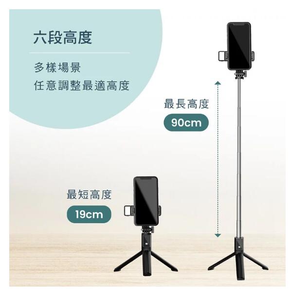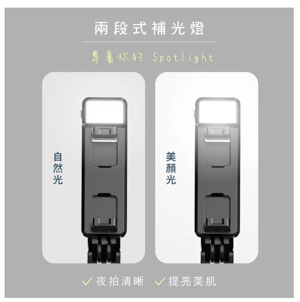 6段式自拍桿,靈活收縮、簡單收納兩段式補光燈,適用寬度6.5-8cm之手機折疊隱藏三腳架,三腳支柱拍攝穩定