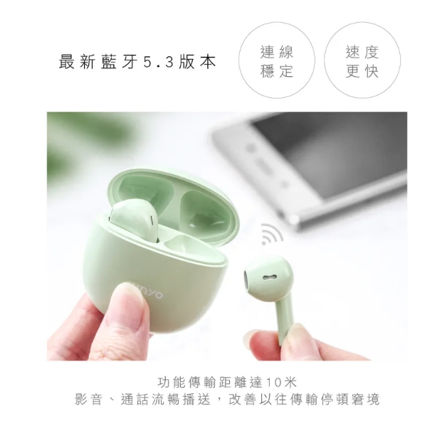 【KINYO】Mini半入耳真無線藍牙綠 BTE-3901G