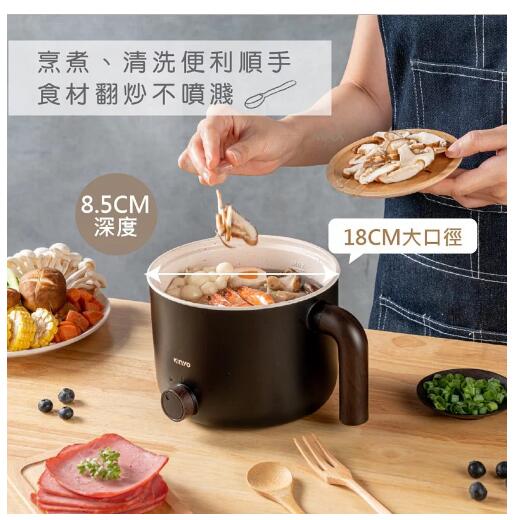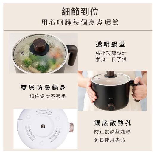 陶瓷內膽/雙層防燙鍋身。18CM大口徑/8.5CM深度。兩段溫控調節/兩道安全防護。1.2L小巧容量/收納簡便插電即用。