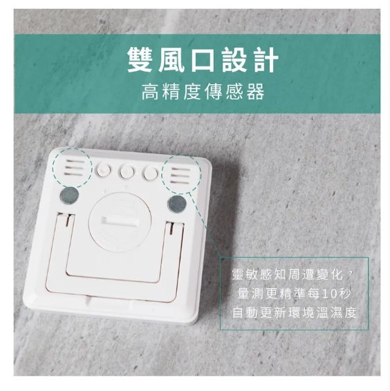 - 時間、溫度、濕度、空氣品質檢測多合一功能