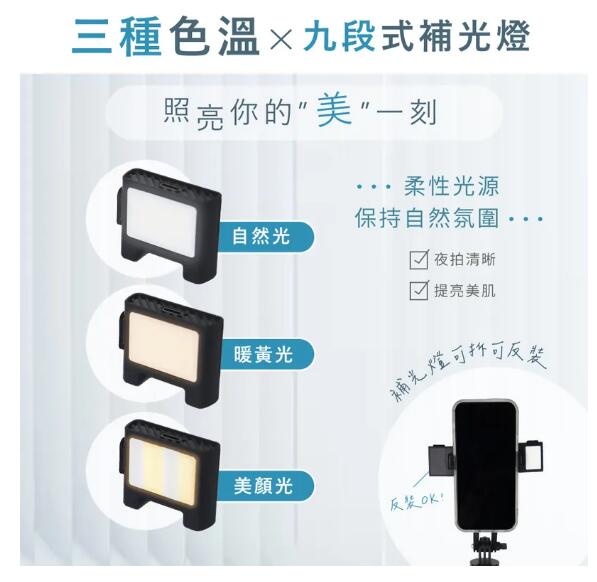 - 產品配件:Type C充電線*1、可拆式補光燈*2