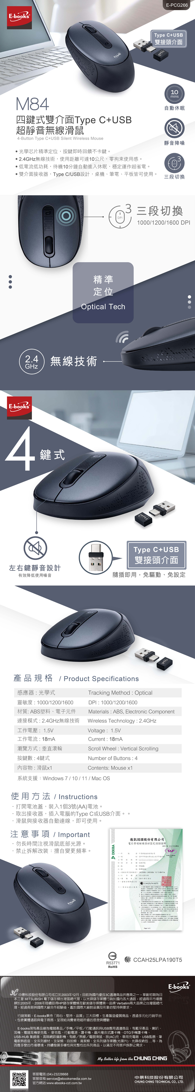 M84 四鍵式雙介面Type C USB超靜音無線滑鼠