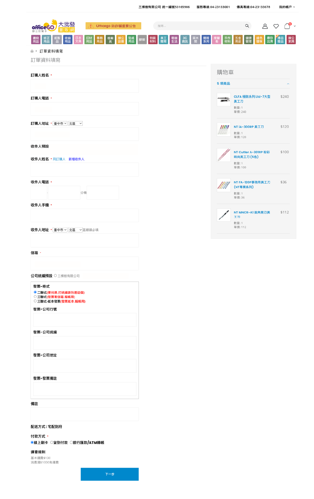 登入後進入到結帳畫面/請填寫詳細資料內容,且確認訂購資料