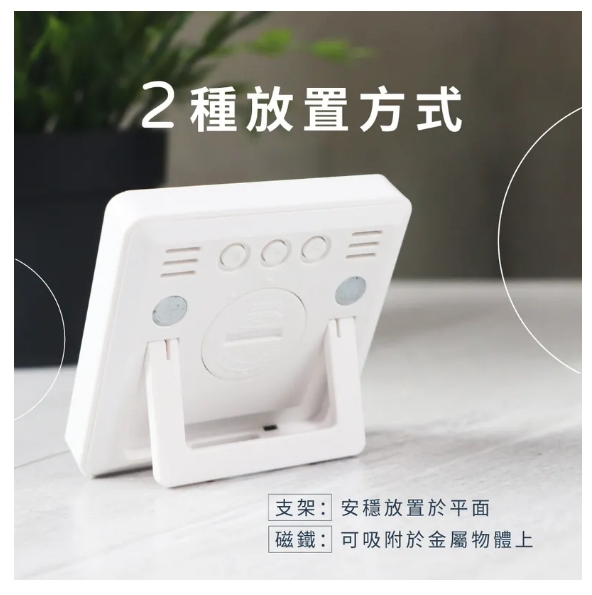 時間、溫度、濕度、空氣品質檢測多合一功能簡約造型1.4cm輕薄小巧厚度每10秒自動更新環境溫濕度LED大螢幕,各項數值清晰可見低功耗,滿電持久續航12個月