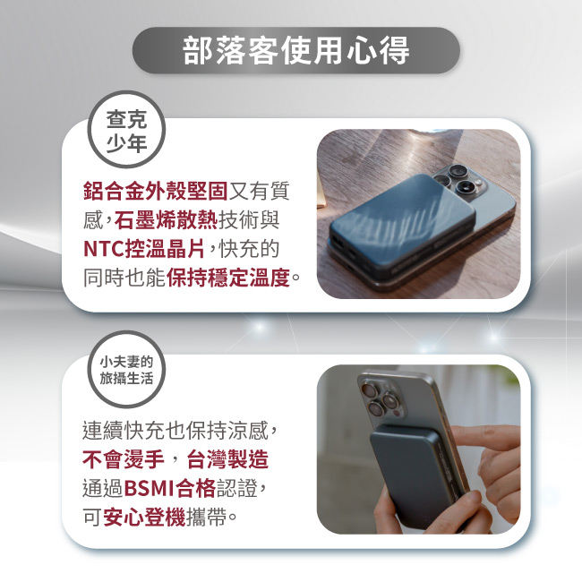 內置溫度探頭,偵測電池溫度,若有異常可切斷行動電源放電